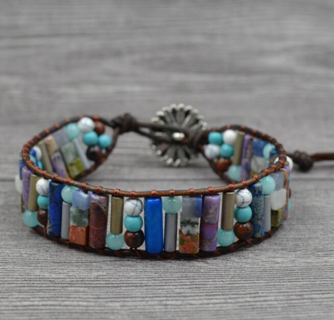 Natural Stone Leather Charm Bracelet - Coolpeacock